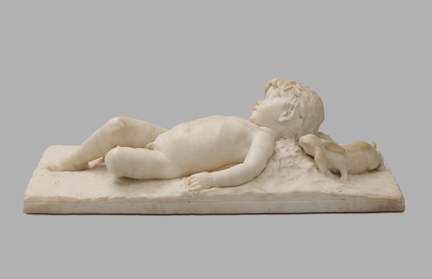 Sleeping Infant Faun Visited by an Inquisitive Rabbit
