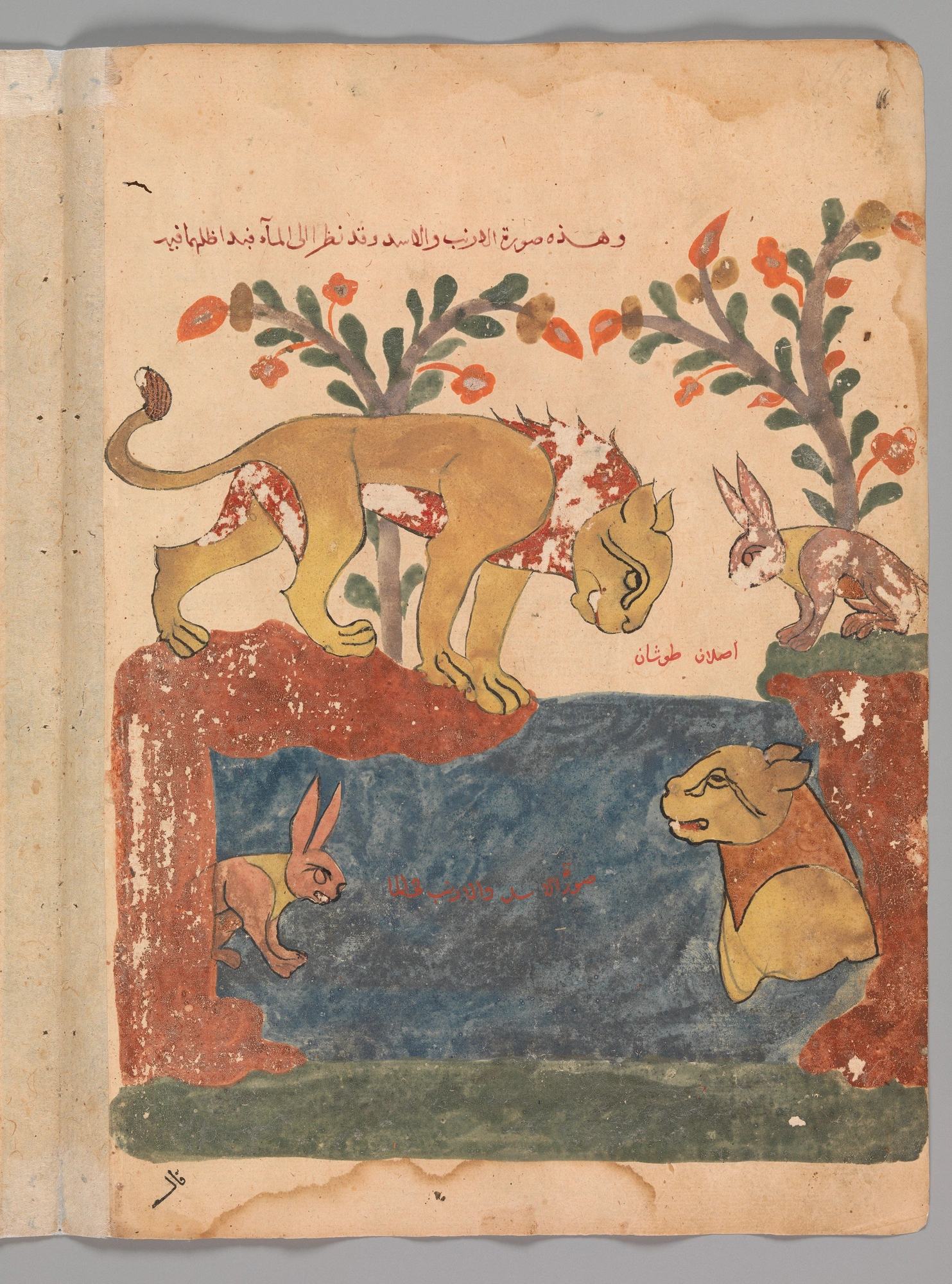 "The Hare, the Lion, and the Well", Folio from a Kalila wa Dimna